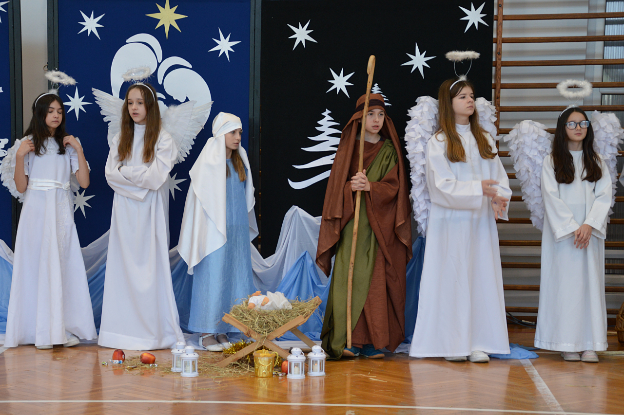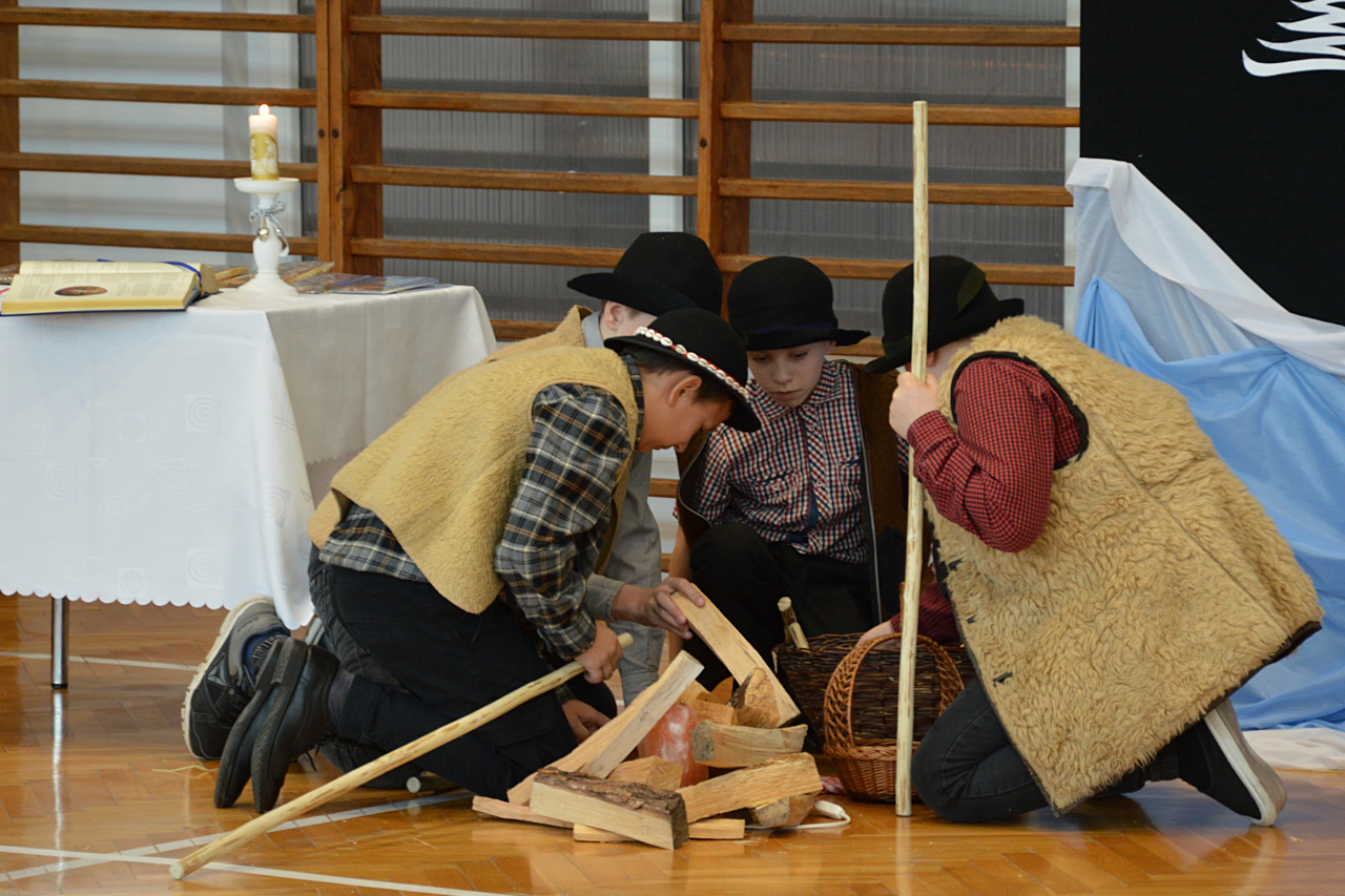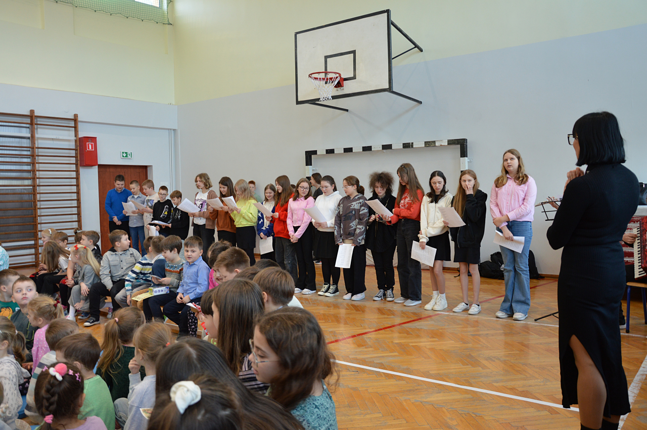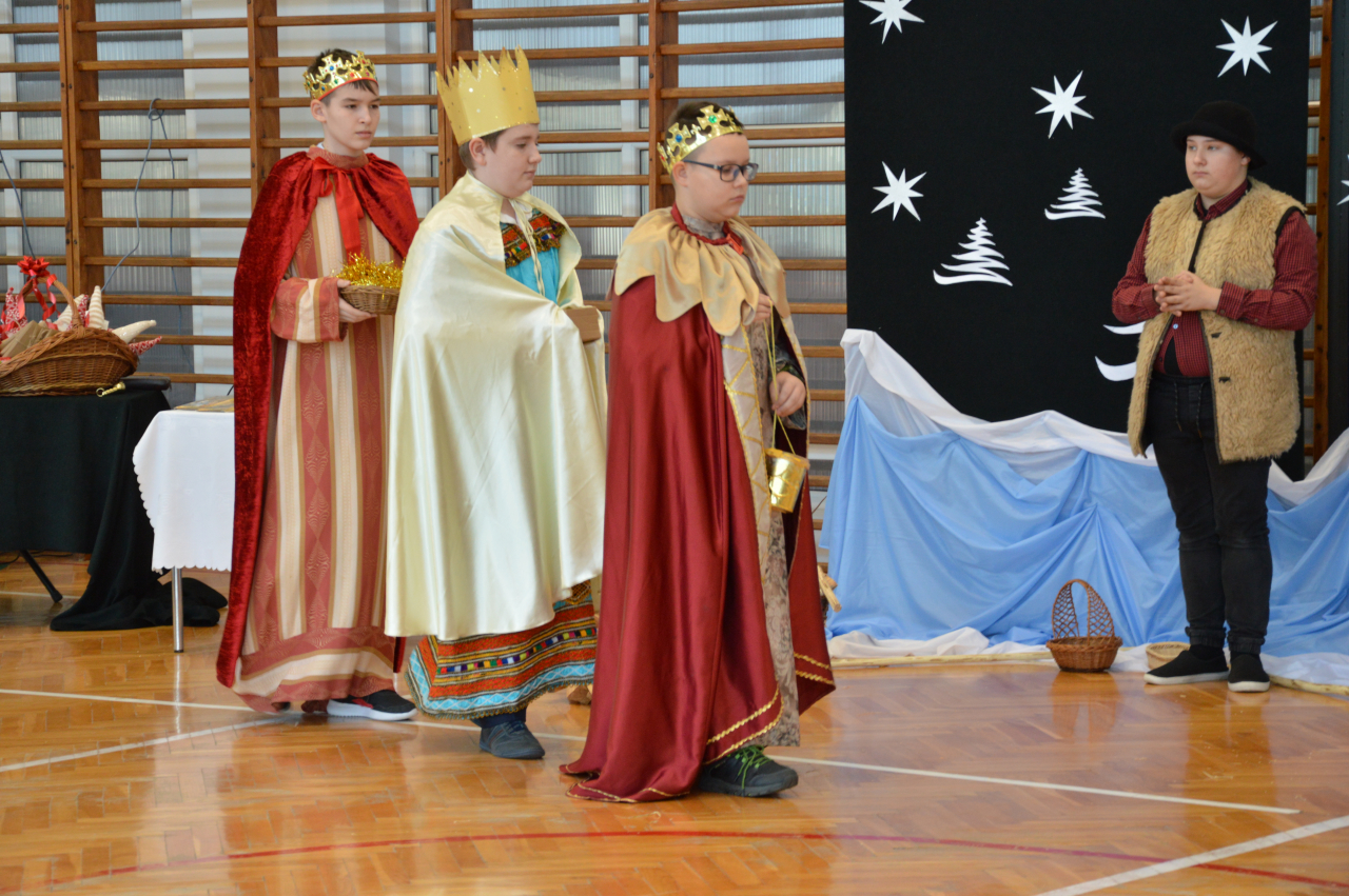 Czwartek 19 grudnia 2024 r. był dniem wyjątkowym w naszej szkole. Szczególnie wyczekiwaną chwilą, było spotkanie opłatkowe całej społeczności szkolnej. Uroczystość rozpoczęła się czytaniem Ewangelii, błogosławieństwem i poświęceniem opłatków przez księdza Roberta Firka. Tegoroczne spotkanie nawiązywało również do tradycyjnych Jasełek. Przedstawienie pantomimą, przygotowane przez p. Edytę Urban, w wykonaniu uczniów klasy VI A, dostarczyło oglądającym dużo wrażeń i wzruszeń. Przewodnicząca Samorządu Uczniowskiego złożyła wszystkim życzenia, po czym delegacje wręczyły Dyrekcji szkoły kartki i stroiki, wykonane przez samych uczniów. Następnie głos zabrał Pan Dyrektor – Józef Babiarz, przekazując wszystkim życzenia świąteczne w imieniu własnym i władz nadrzędnych.