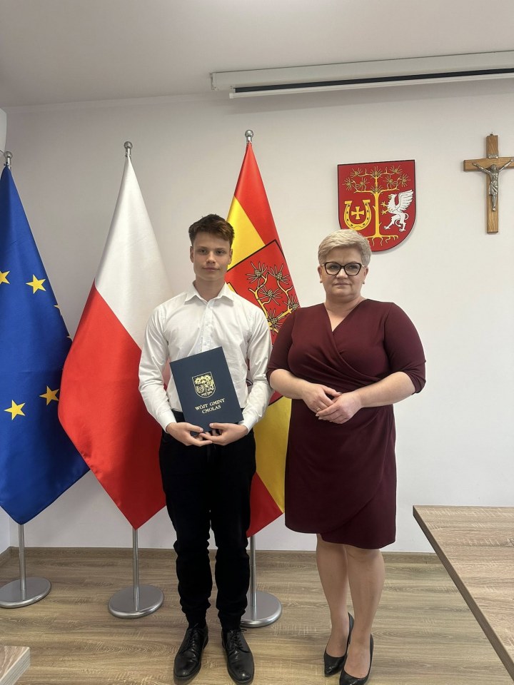 Wójt Gminy Cmolas p. Bernadetta Wolak-Posłuszny po ogłoszeniu przez OKE wyników egzaminów ósmoklasisty nagrodziła również tych uczniów, którzy w każdej ze szkół gminy Cmolas otrzymali najwyższe rezultaty. Jest nam miło poinformować, że absolwentem naszej szkoły, który uzyskał najwyższy wynik egzaminu jest Patryk Skrzypczak.