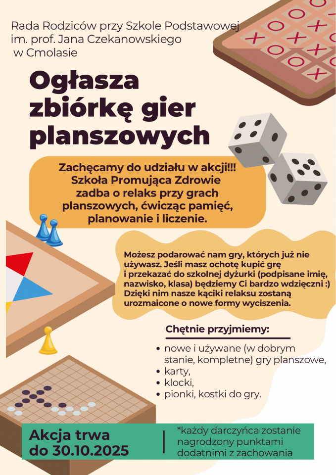 Rada Rodziców naszej szkoły ogłasza zbiórkę gier planszowych. Zamieńmy korzystanie z telefonów na czas spędzony z kolegami i koleżankami przy planszówkach.