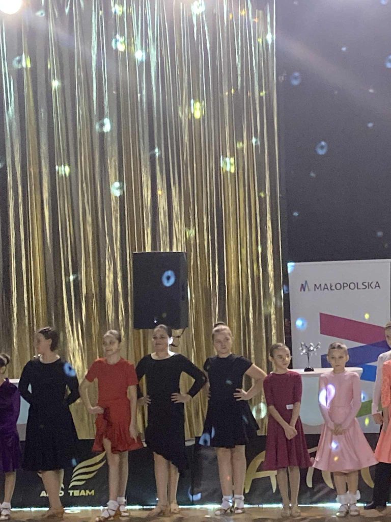 Uczennice klas piątych w niedzielę 30.11.2025r. uczestniczyły w Ogólnopolskim Turnieju Tańca Towarzyskiego. Dla dziewczynek były to pierwsze starty w kategorii 10-11 klasy H. Tym bardziej cieszy fakt, że wróciły z medalami: