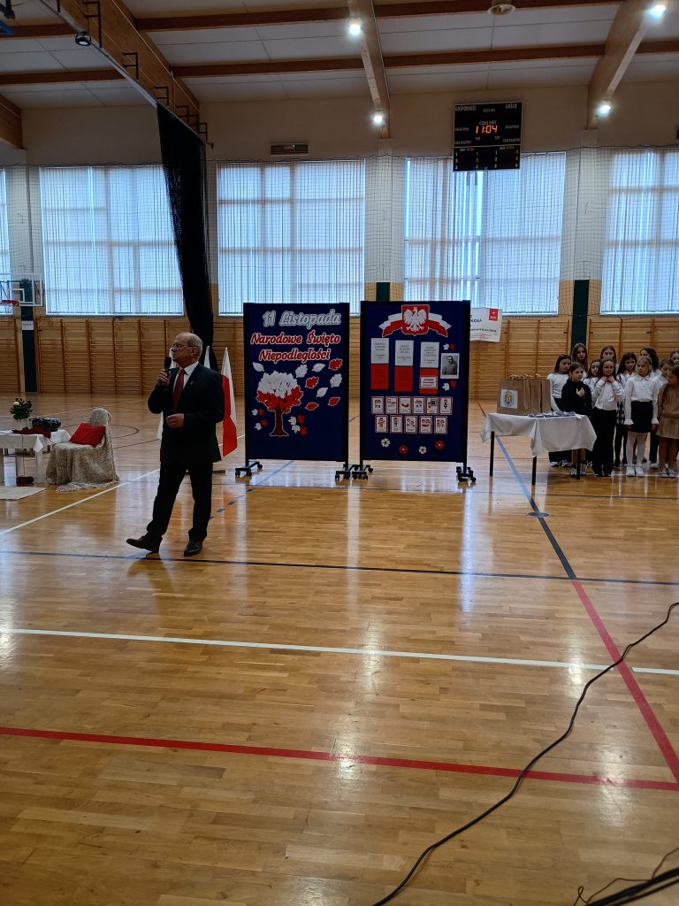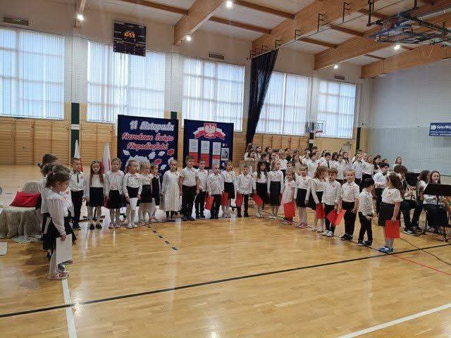 W uroczystości wzięła udział cała społeczność szkolna oraz rodzice. Akademia miała na celu rozwijanie wśród uczniów świadomości, jak ważne są takie wartości jak: wolność, niepodległość, patriotyzm, suwerenność. Była okazją do refleksji nad tym, jak ważna jest nasza Ojczyzna. Wydarzenie rozpoczęliśmy od odśpiewania hymnu wspólnie z chórem szkolnym, przy akompaniamencie orkiestry szkolnej . Następnie uczniowie zaprezentowali program artystyczny, który składał się z wierszy, pieśni patriotycznych, piosenek o Ojczyźnie, scenki o wydarzeniach historycznych pt. “Opowiedz mi babciu”. Uczniowie klas trzecich zatańczyli poloneza. Wszyscy występujący artyści byli bardzo zaangażowani, z pasją i emocjami opowiadali o swojej Ojczyźnie.