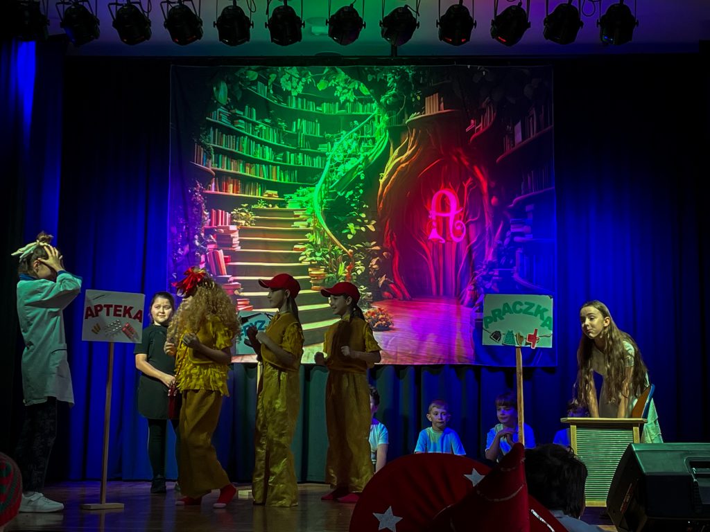 W niedzielę uczniowie naszej szkoły wzięli udział w Festiwalu Teatrów w Trzęsówce, prezentując przedstawienie „Akademia pana Kleksa”. W spektaklu wystąpiło 34 uczniów, którzy z dużym zaangażowaniem wcielili się w role bohaterów znanej powieści Jana Brzechwy.