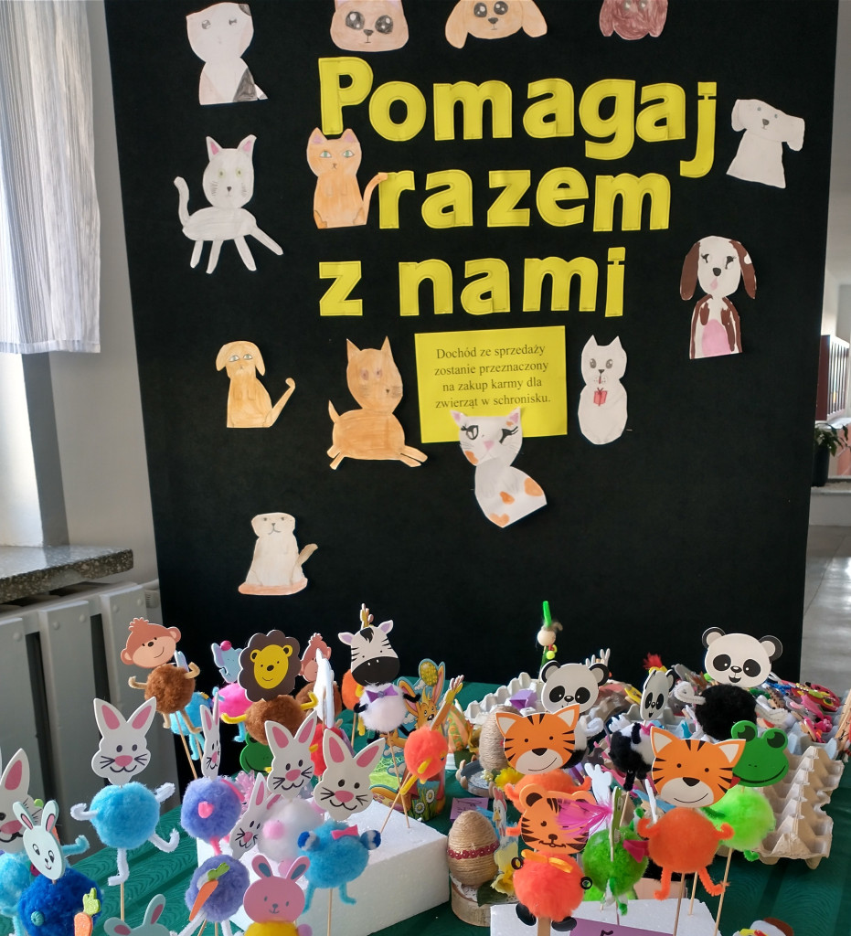 0d 10marca 2026 r. po paz kolejny rozpoczęliśmy w naszej szkole akcję “Pomagaj razem z nami” na rzecz zwierząt ze schroniska. Każdy może wesprzeć tą szlachetną inicjatywę kupując przeróżne ozdoby, zawieszki, zwierzątka, stroiki itp. wykonane z wielkim zaangażowaniem przez uczennice klas trzecich na zajęciach plastycznych prowadzonych przez pedagoga szkolnego. Nasi uczniowie nieustannie uczestniczą w takich lub podobnych przedsięwzięciach na rzecz ludzi, zwierząt i nie tylko, które kształtują w nich dobro, empatię, świadomość i odpowiedzialność. Razem możemy wiele. Zebrane pieniądze zostaną przeznaczone na zakup karmy, którą kolejny raz przekażemy do schroniska.